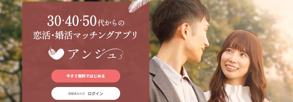 アンジュは30歳以上のユーザーのみが登録できるため、同年代の真剣な出会いを求める人々に最適なマッチングアプリ。若い世代が中心の他のマッチングアプリとは異なり、成熟した出会いが期待できます。