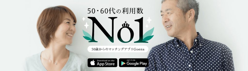 Goensは、50代・60代に特化したマッチングアプリです。若者向けアプリに抵抗を感じる人にとって、まさに理想的な選択肢といえるでしょう。
